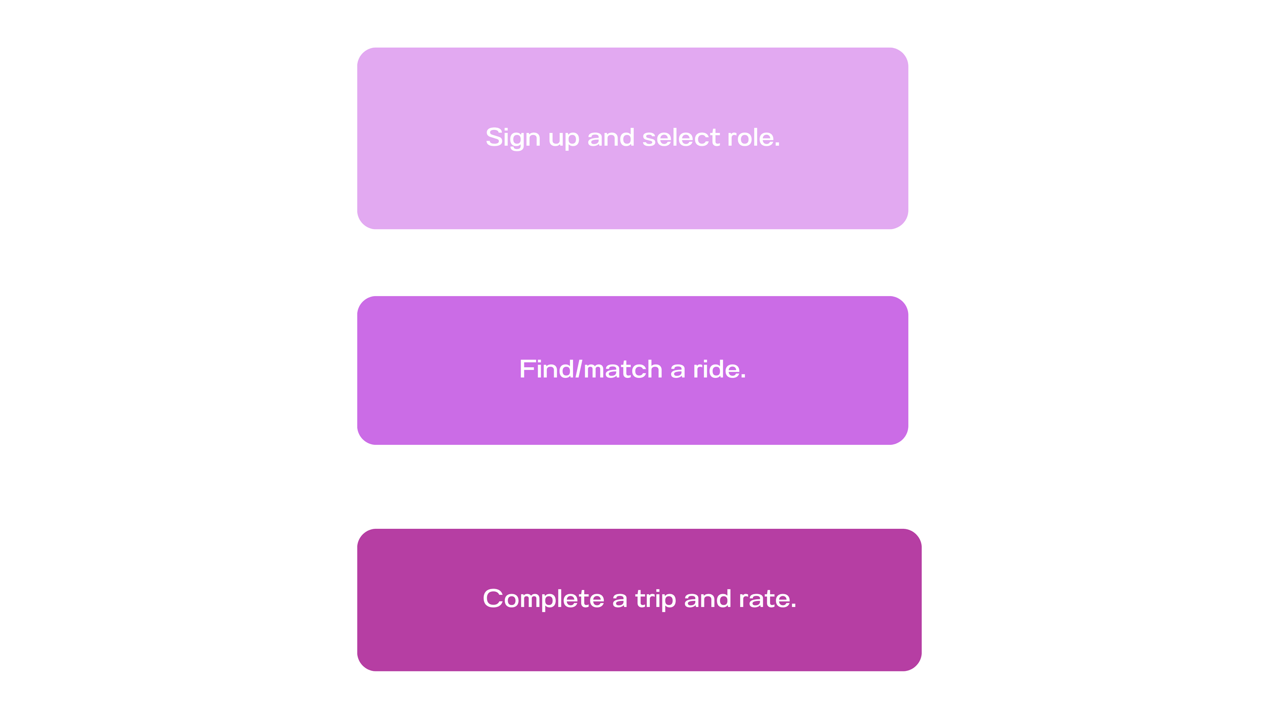 High-fidelity mockups created with Figma showed Key screens: onboarding, route matching, in-trip tracking, and the rating system.